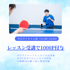 平日に対象レッスンを受講された方へ、「1レッスンにつき1,000ポイントを付与」いたします